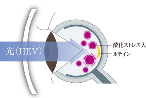 HEVが目の中に入ることで眼球内のルテインが減少し、眼病のリスクを高めると言われています。