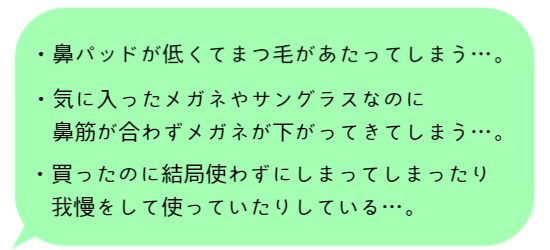 フレームの素材や程度により、鼻盛り・鼻あて加工ができないものもございます。
