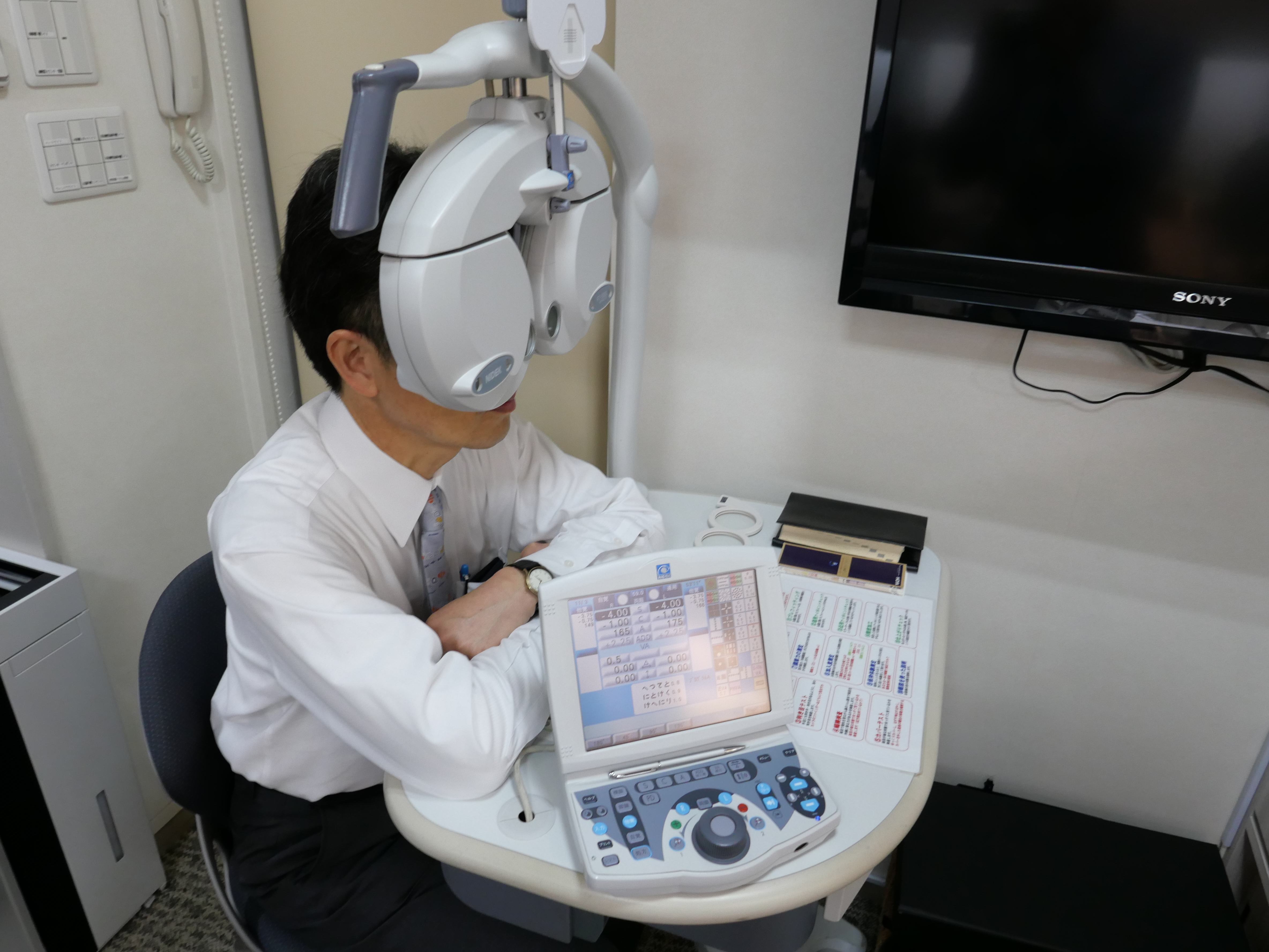 遠くを見やすくするために必要な度数を測定します。隠れ斜視があるかも確認します。