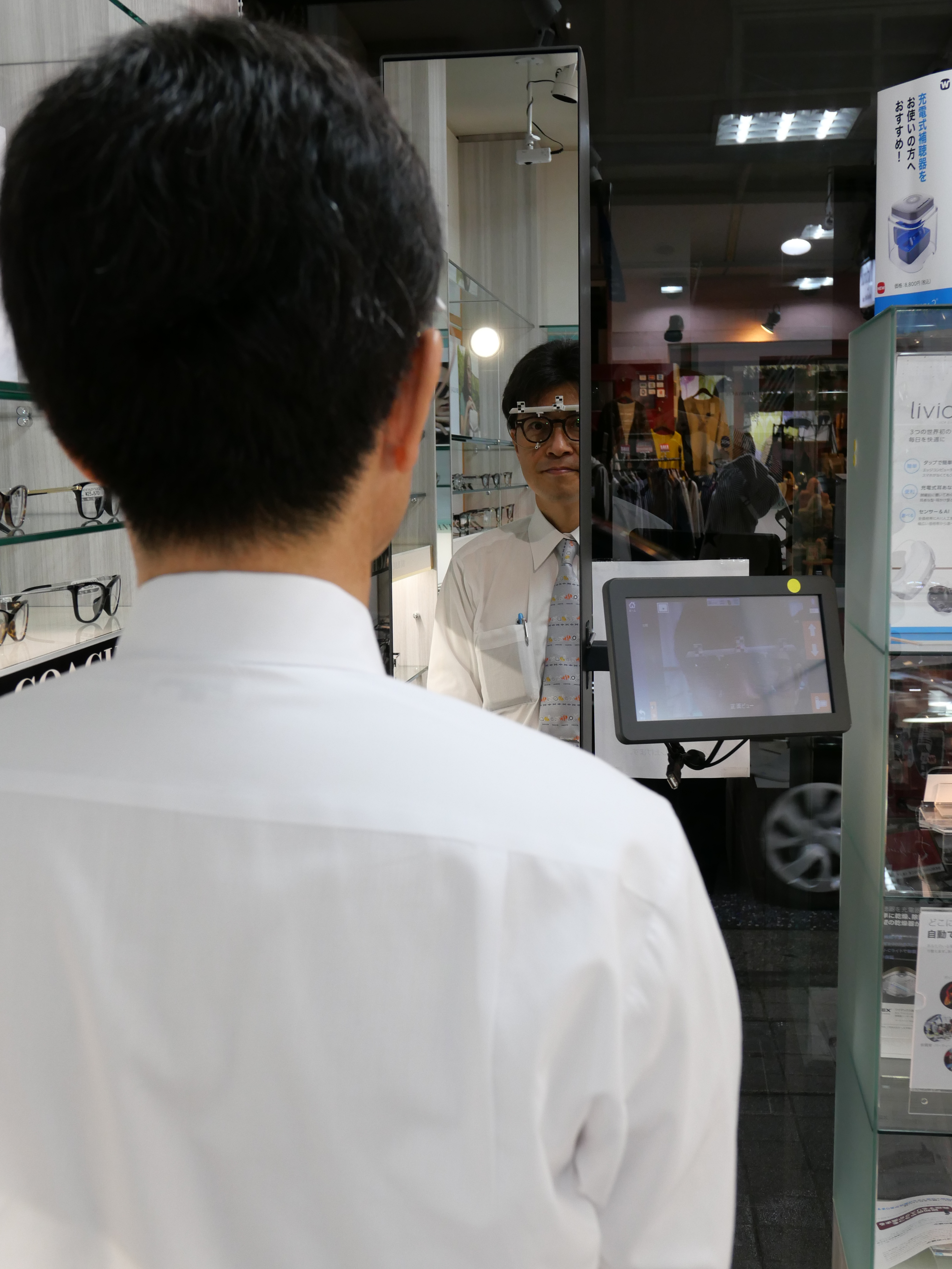 お選びになったメガネを掛けたときに目の位置がどこにあるかを確認します。