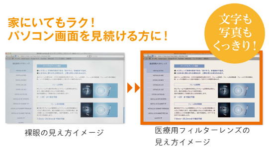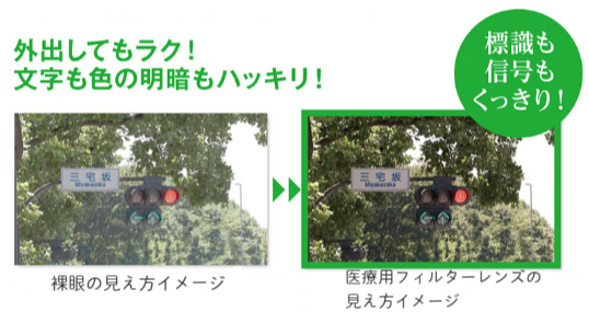 更に医療用カラーによる眩しさカットとコントラストアップ効果で
