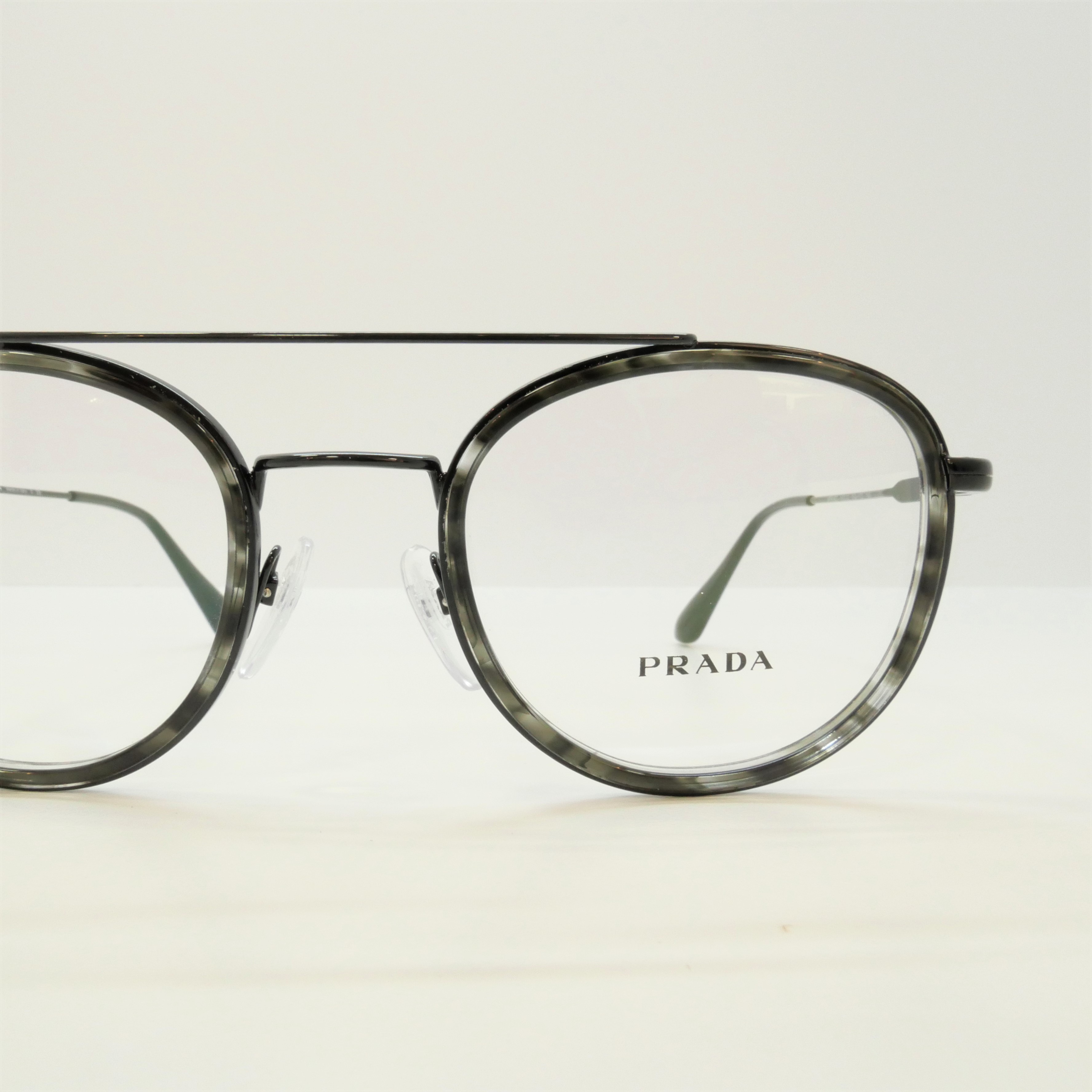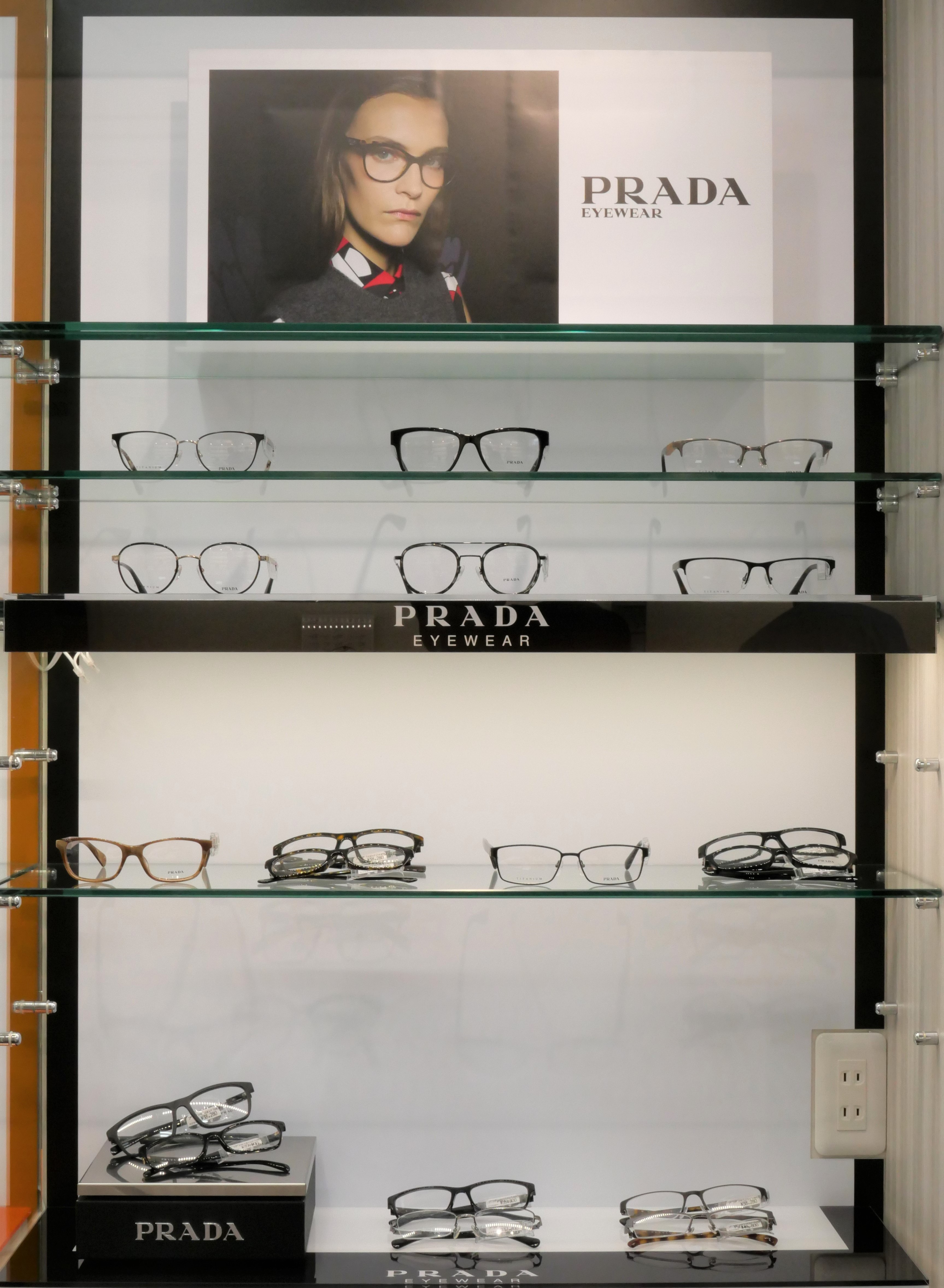 流行にとらわれず独自のスタイルを確立しているプラダのデザインはメガネフレームにも反映されています。
